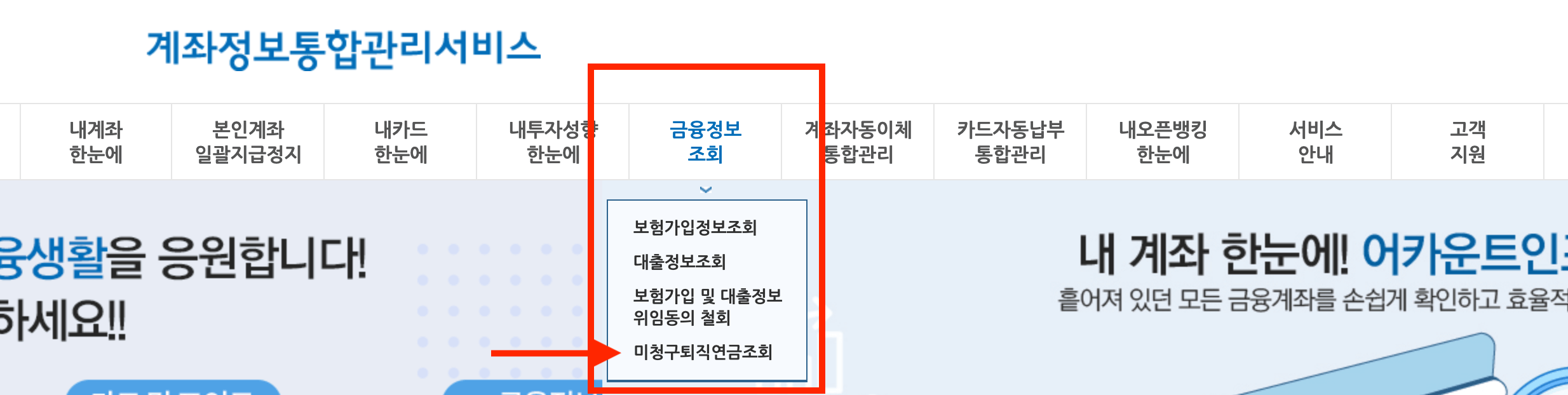 숨은 미수령 미청구 퇴직연금 조회 방법 - 계좌정보통합관리서비스 (어카운트 인포)